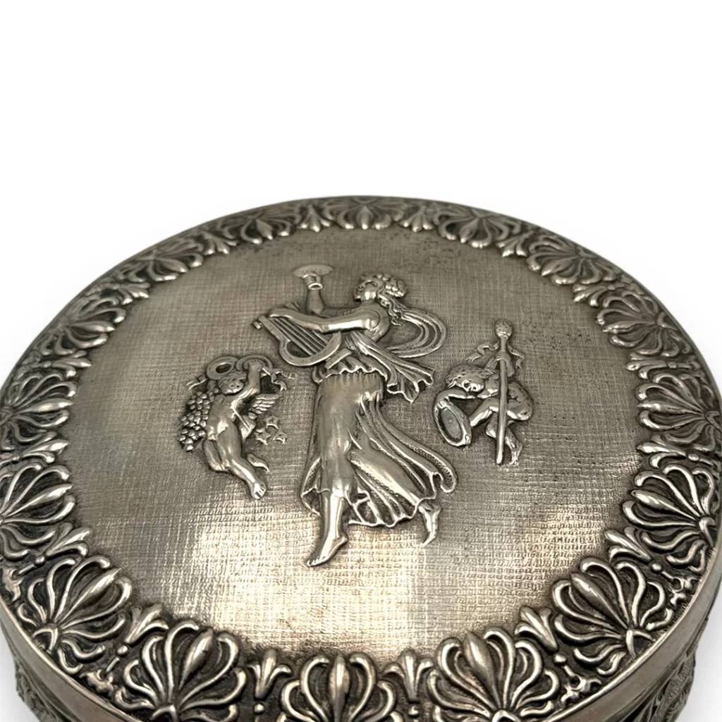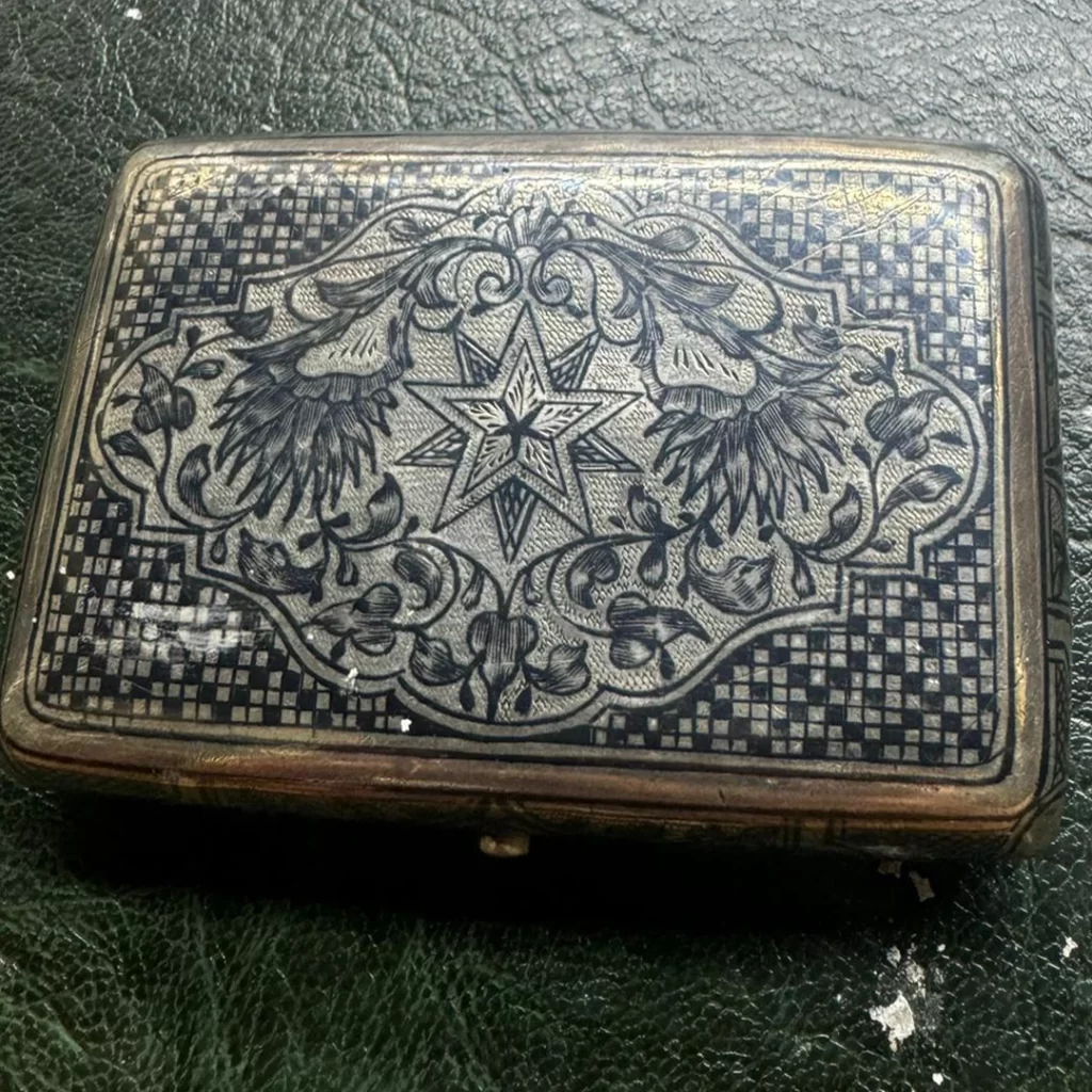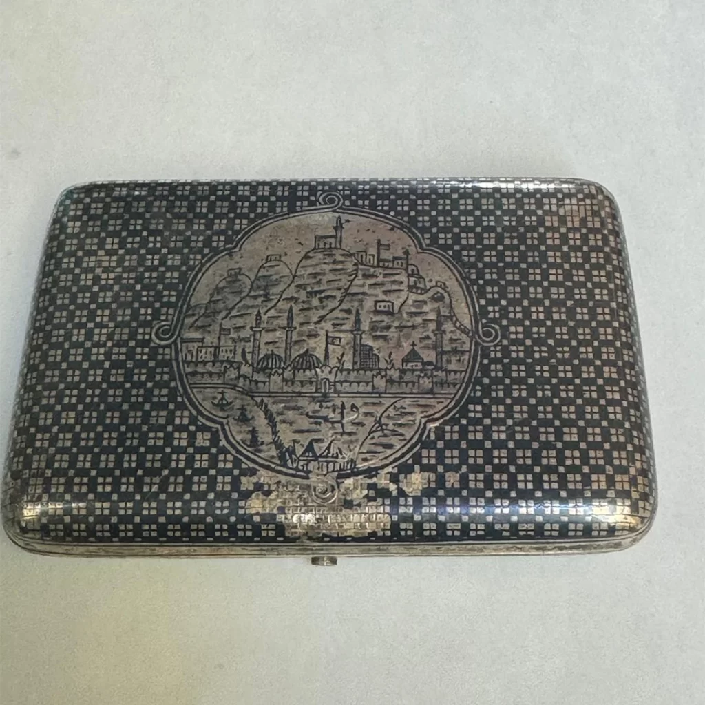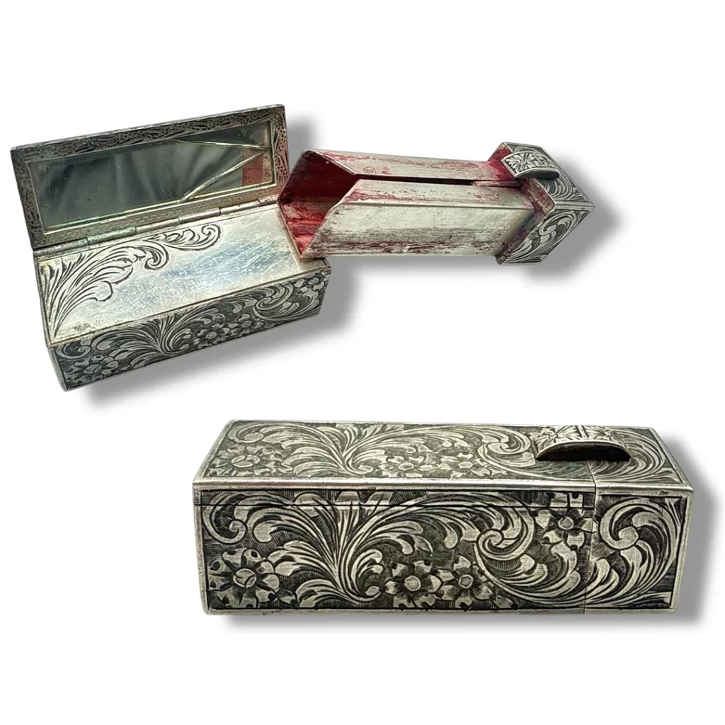 Gümüşün asaletini usta işçilikle buluşturan nadide bir koleksiyon. Ayhan Antik gümüş seçkisinde; kalem işçilikli tabakalardan damgalı sandıklara, aynalı makyaj kutularından geometrik desenli özel objelere kadar tarihin parıltısını taşıyan parçalar yer alıyor. Her biri bir dönemin estetik anlayışını yansıtan bu damgalı gümüşler koleksiyonlara değer katıyor.